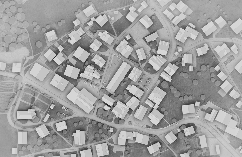 Die geplante Gemeindeverwaltung mit Dorfplatz übernehmen diese Ortstypischen Merkmale.
