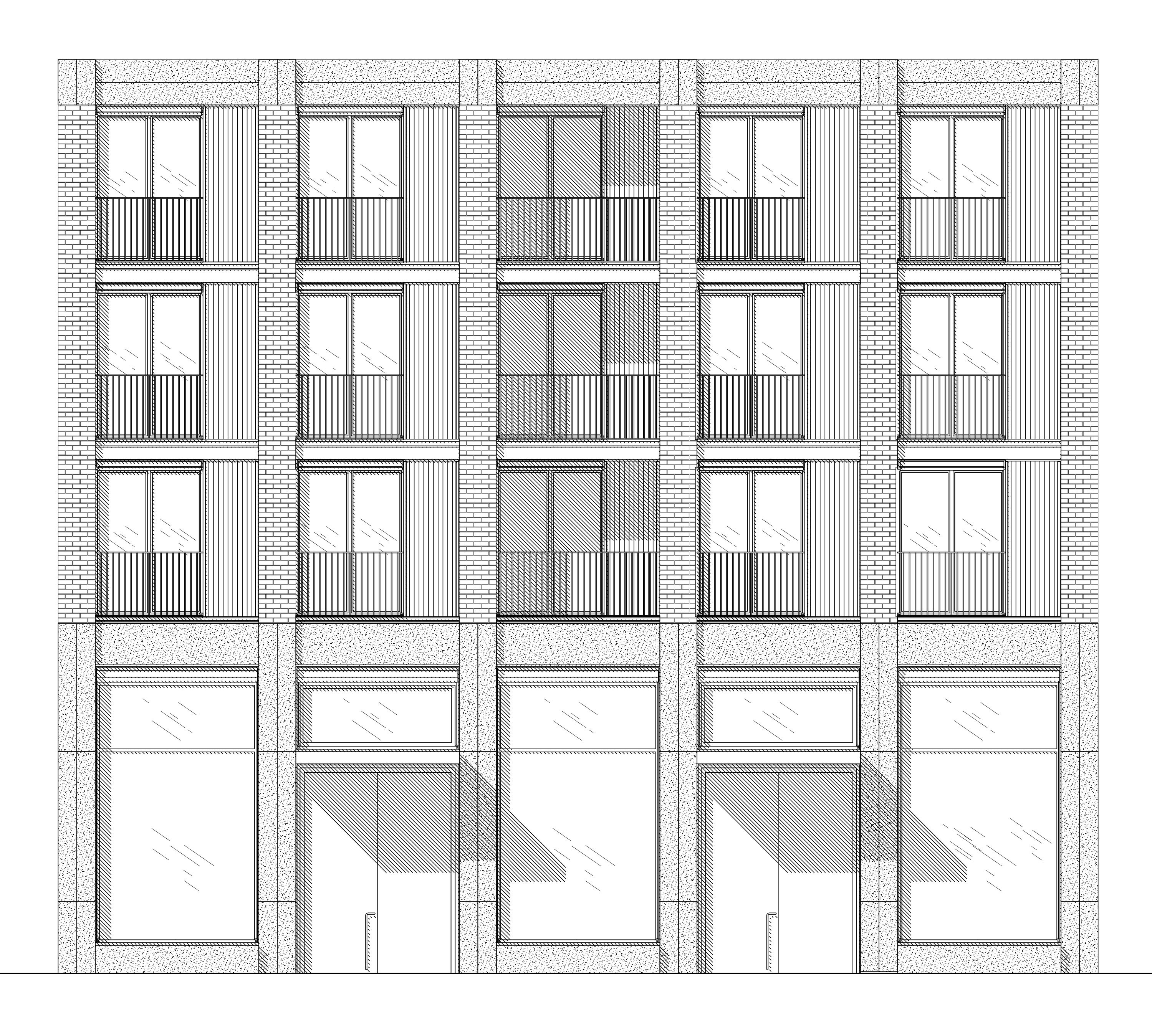 Die öffentlichen Nutzungen der Kirchgemeinde belegen jeweils die Erdgeschosse und beleben ihn.
