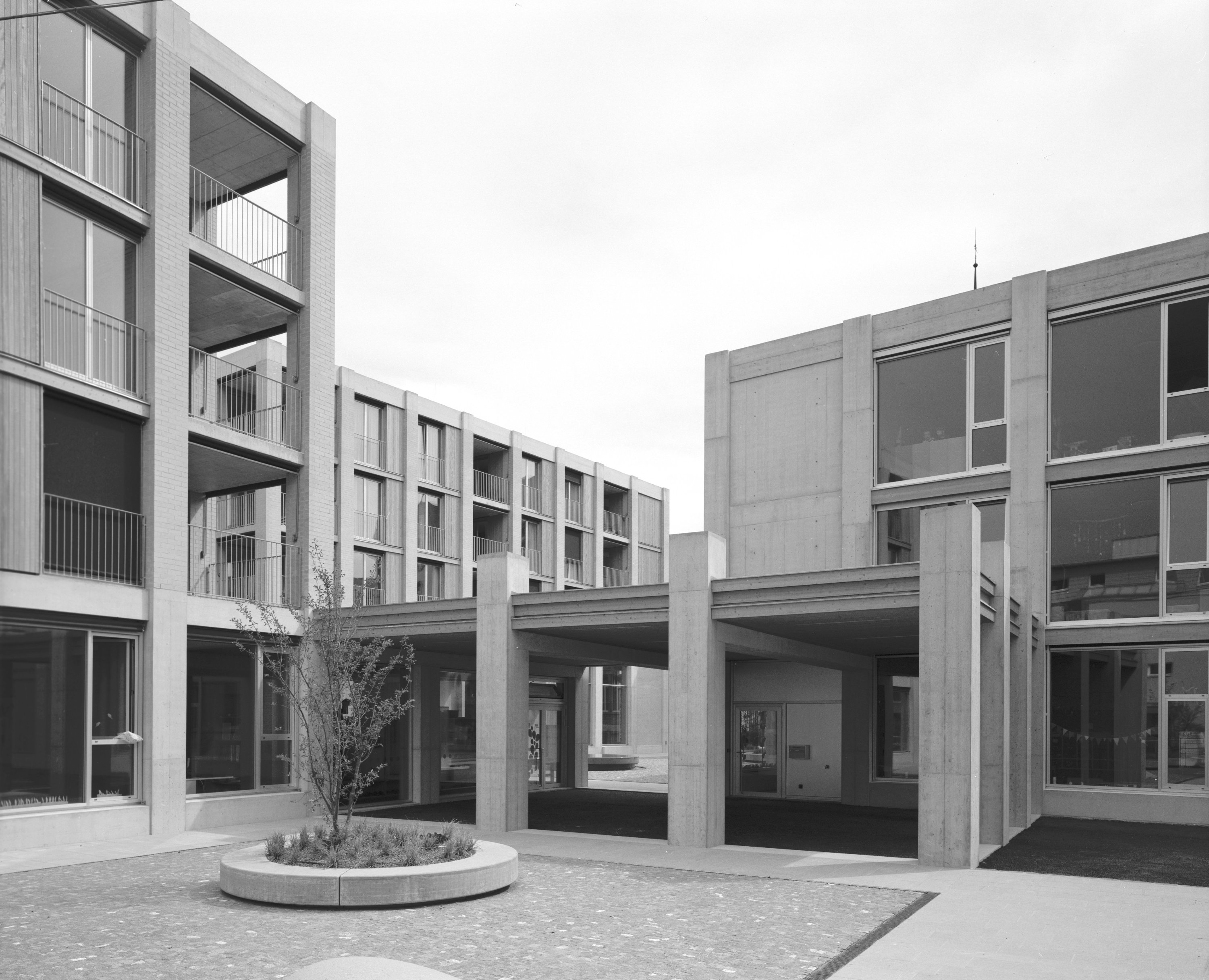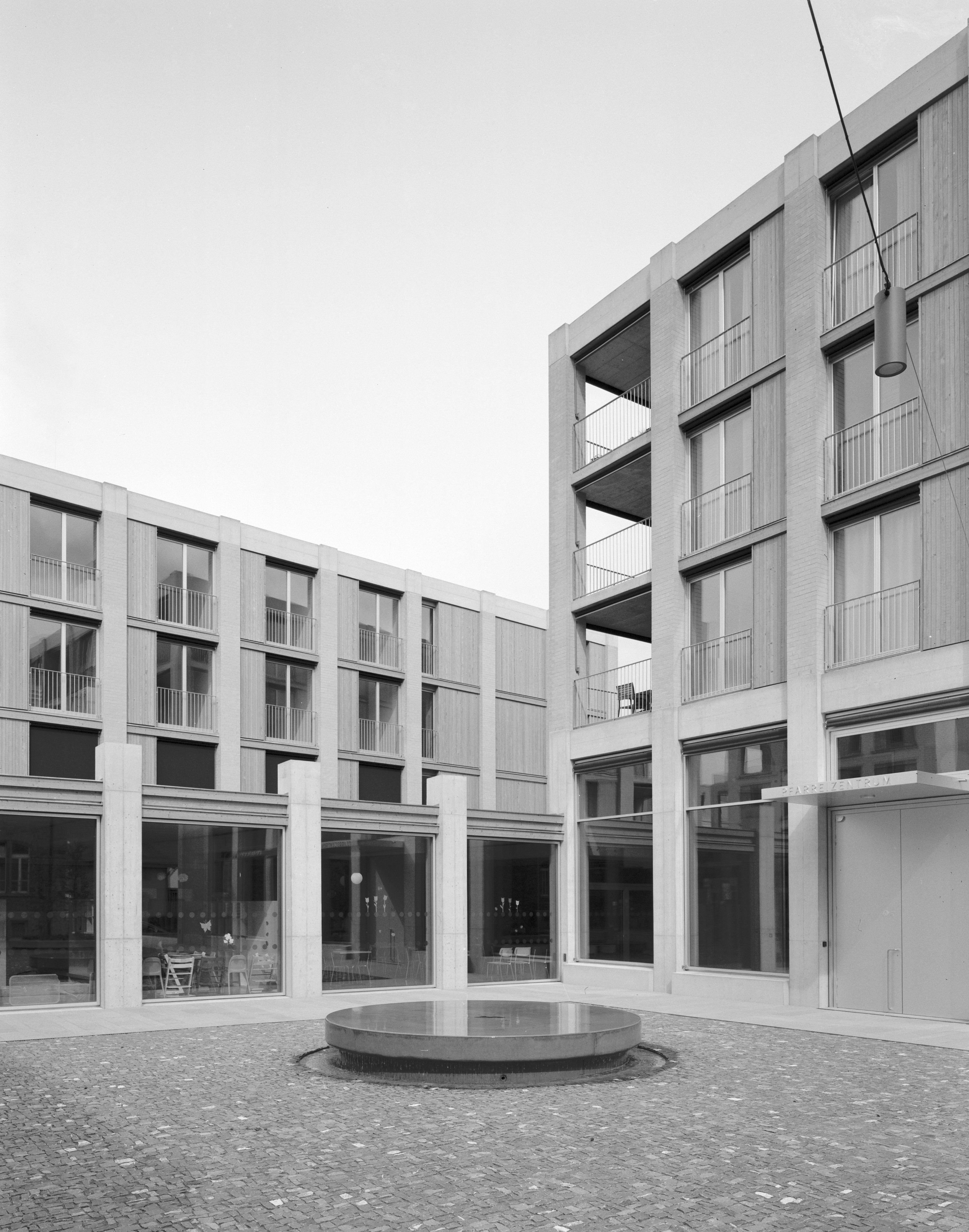 Die Obergeschosse der zwei Gebäude am „Im Grund“ dienen dem Wohnen und formulieren Nutzungsseitig einen weichen Übergang zum angrenzenden Wohnquartier.