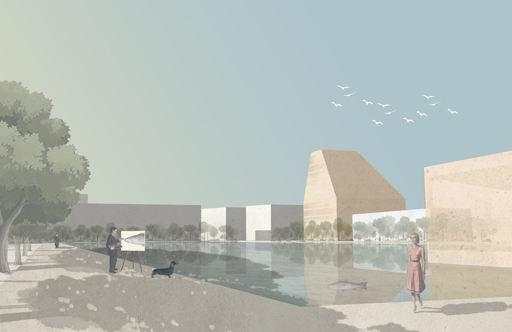 Um die Weite und die Einzigartigkeit dieser Stelle neu zu definieren tritt ein bodenbündiges Wasserbecken an die Stelle des ehemaligen Appellplatzes.