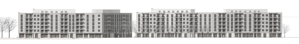 Die privaten Aussenräume sind strassenseitige in Form von einspringenden Loggien ausgebildet um dem Lärmschutz Rechnung zu tragen. Hofseitig bieten durchgängige Balkone mit Einzügen ausreichend Fläche und Privatsphäre für eine hohe Wohnqualität.